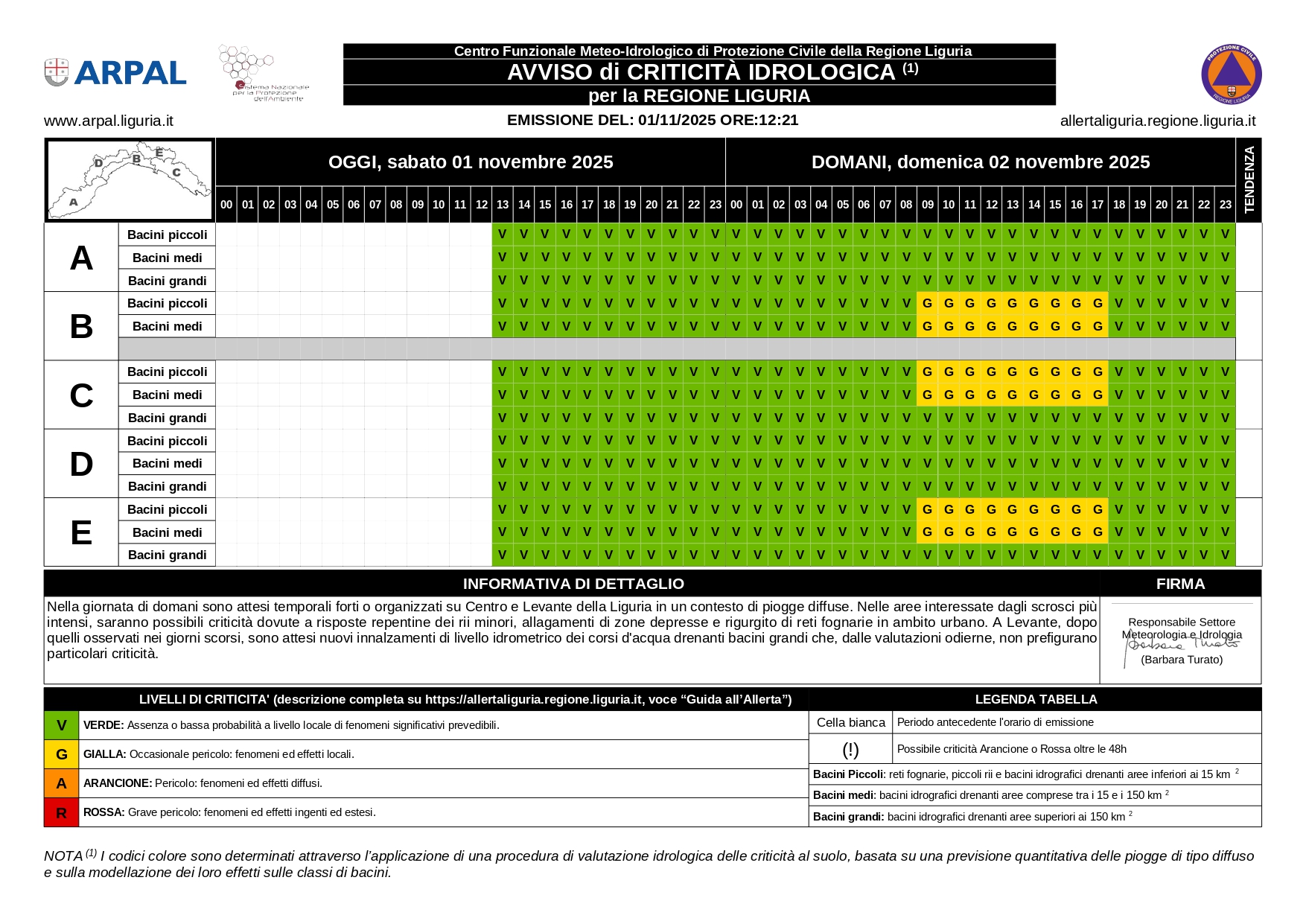 La Sala Operativa Regionale resterà aperta per tutta la durata dell’allerta. In caso di eventi intensi, durante l’allerta sarà pubblicato il monitoraggio sul sito https://allertaliguria.regione.liguria.it/