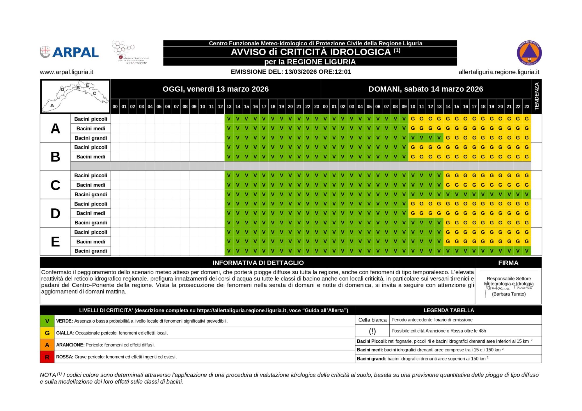 Si emette allerta gialla idrologica e per temporali nella giornata di domani, sabato 14 marzo.